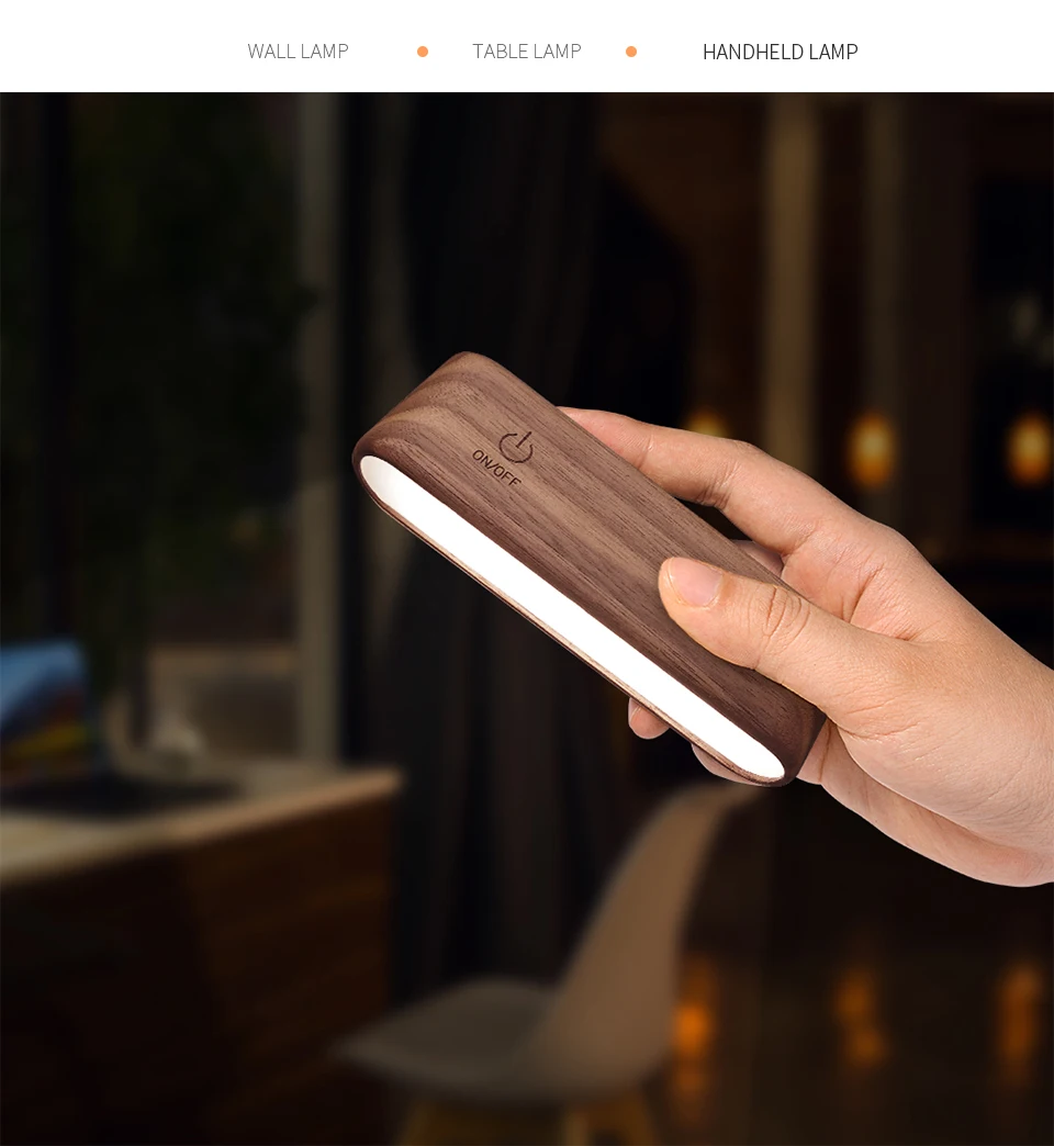 LED Beech Wood Magnetic Rechargeable Night Lights 360° Rotatable Portable Black Walnut Bedroom Wall Bedside Reading Table Lamp