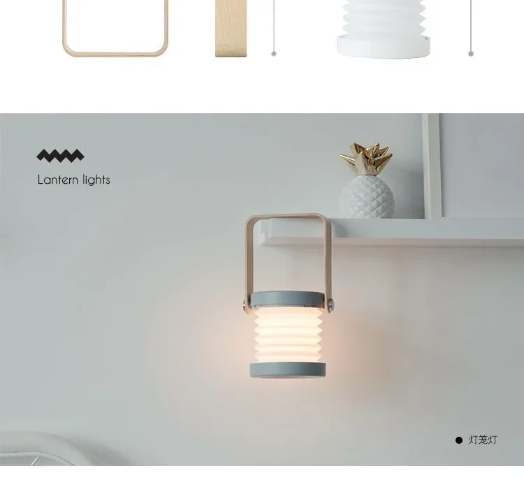 LED lantern light with wooden handle, portable, retractable, foldable, USB charging,home decoration, desktop decoration, gift.