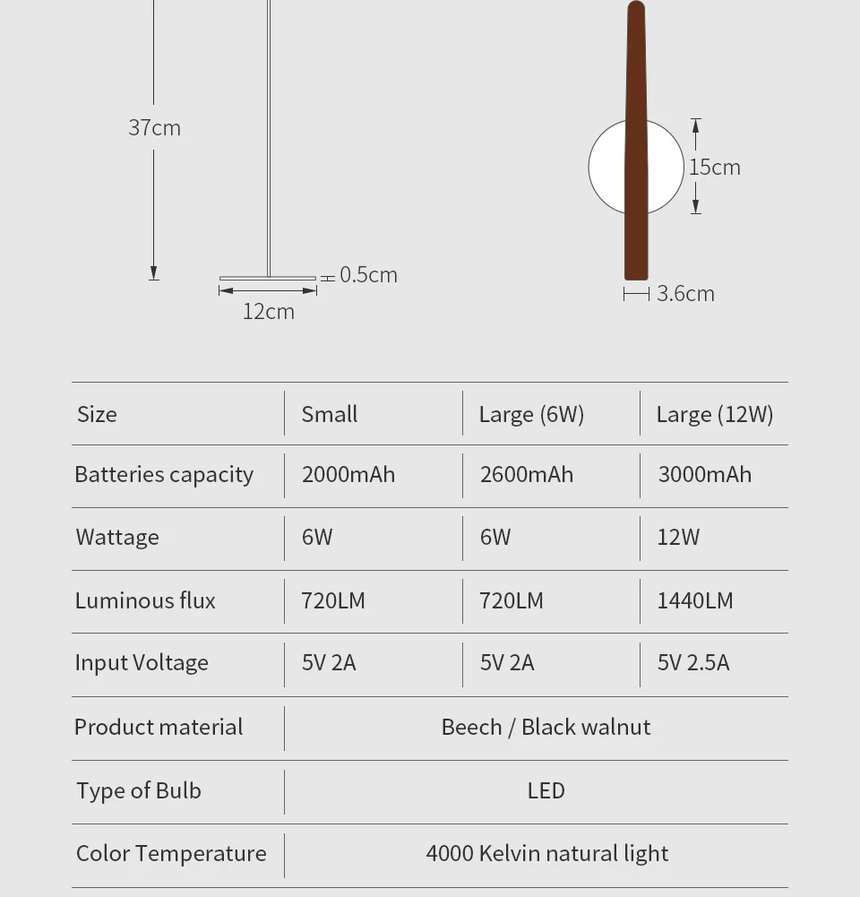 Noble Wood Table Lamp 360° Rotating USB Cable Charging Portable with Magnet Reading Lamps for Bedroom Living Room LED Desk Light