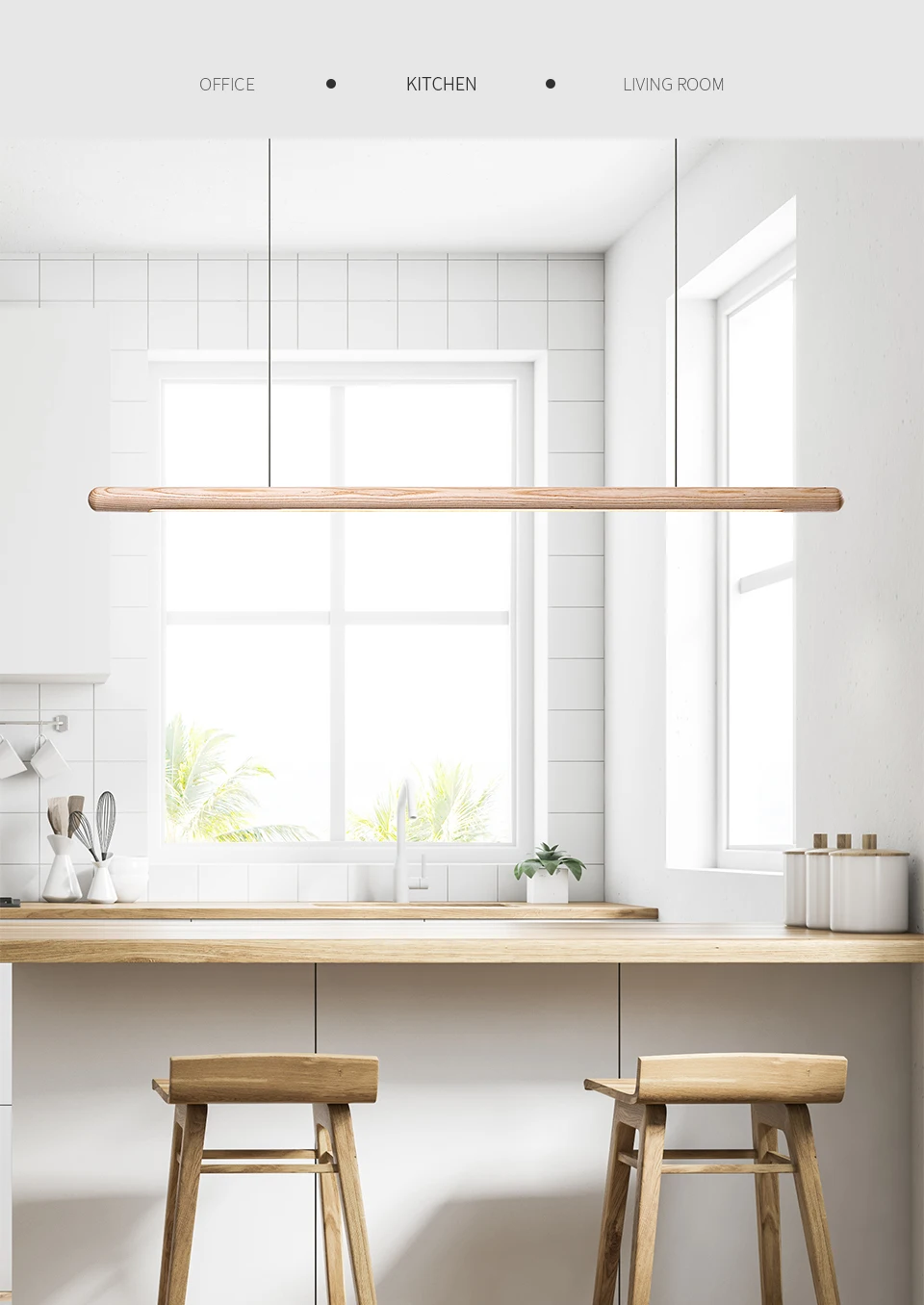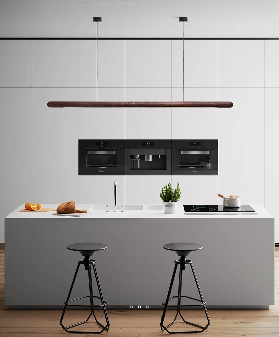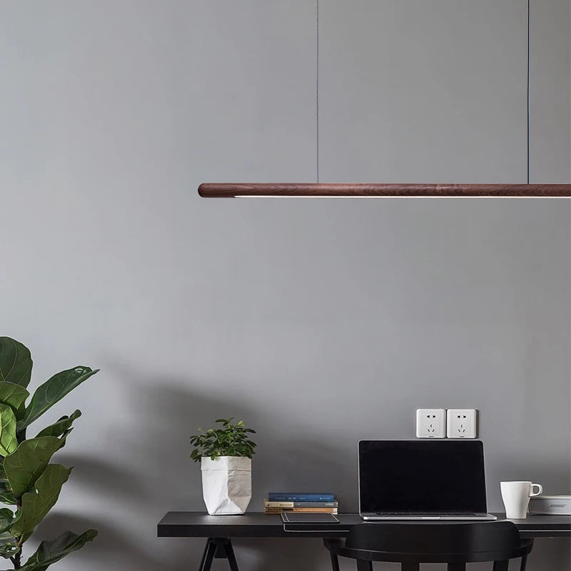 Nordic Solid Wood LED Pendant Lamp Bedroom Kitchen Light Hanging Circular Long Strip Modern Lights for Living Dining Room