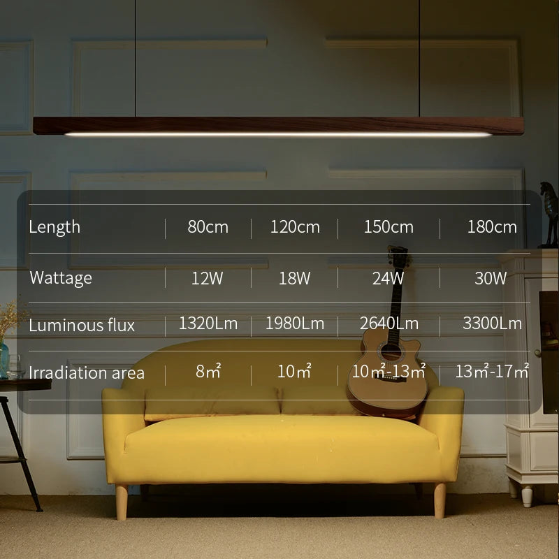 Nordic Wood Pendant Lights LED Modern Hanging Lamps for Dining Living Room Kitchen Office Shop Long Strip Celling Lamp